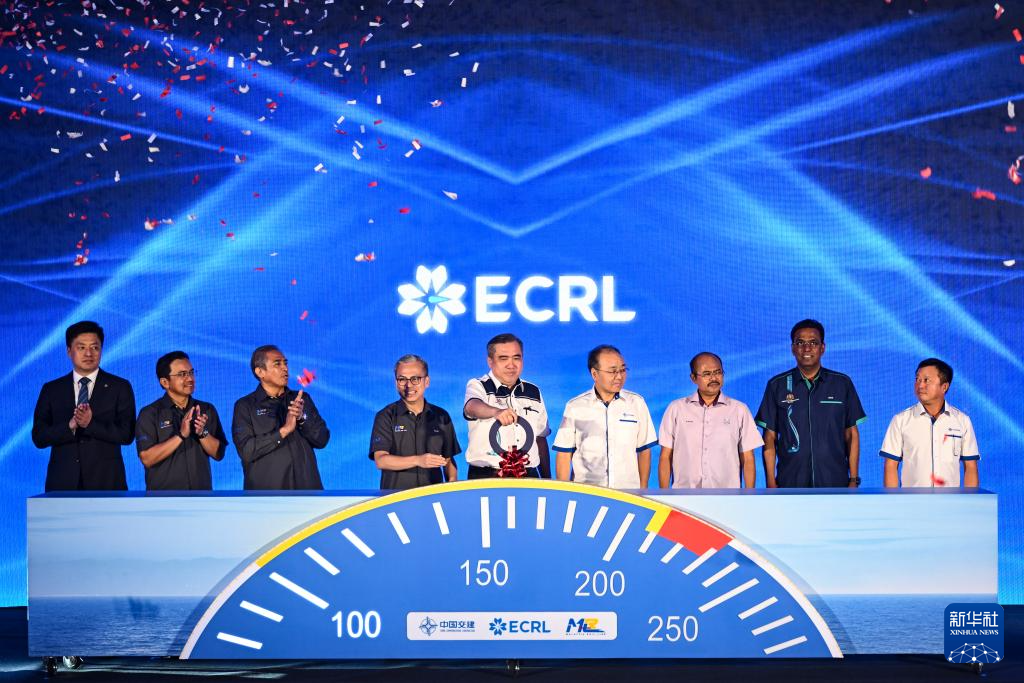 The high-speed train unit of the Ma Dong Railway project, constructed by Chinese enterprises, has officially made its debut
