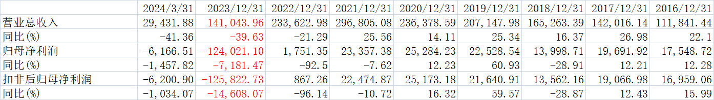 In 2023, the company’s net profit attributable to the parent company was 1.24 billion yuan, compared to a net profit of 17.5135 million yuan in the same period last year, which turned from profit to loss; The operating revenue was 1.41 billion yuan, a year-on-year decrease of 39.63%. Data shows that from 2016 to 2022, Changshan Pharmaceutical’s total net profit attributable to the parent company was approximately 1.24 billion yuan. This means that Changshan Pharmaceutical lost the total profit of the previous seven years in just one year in 2023.